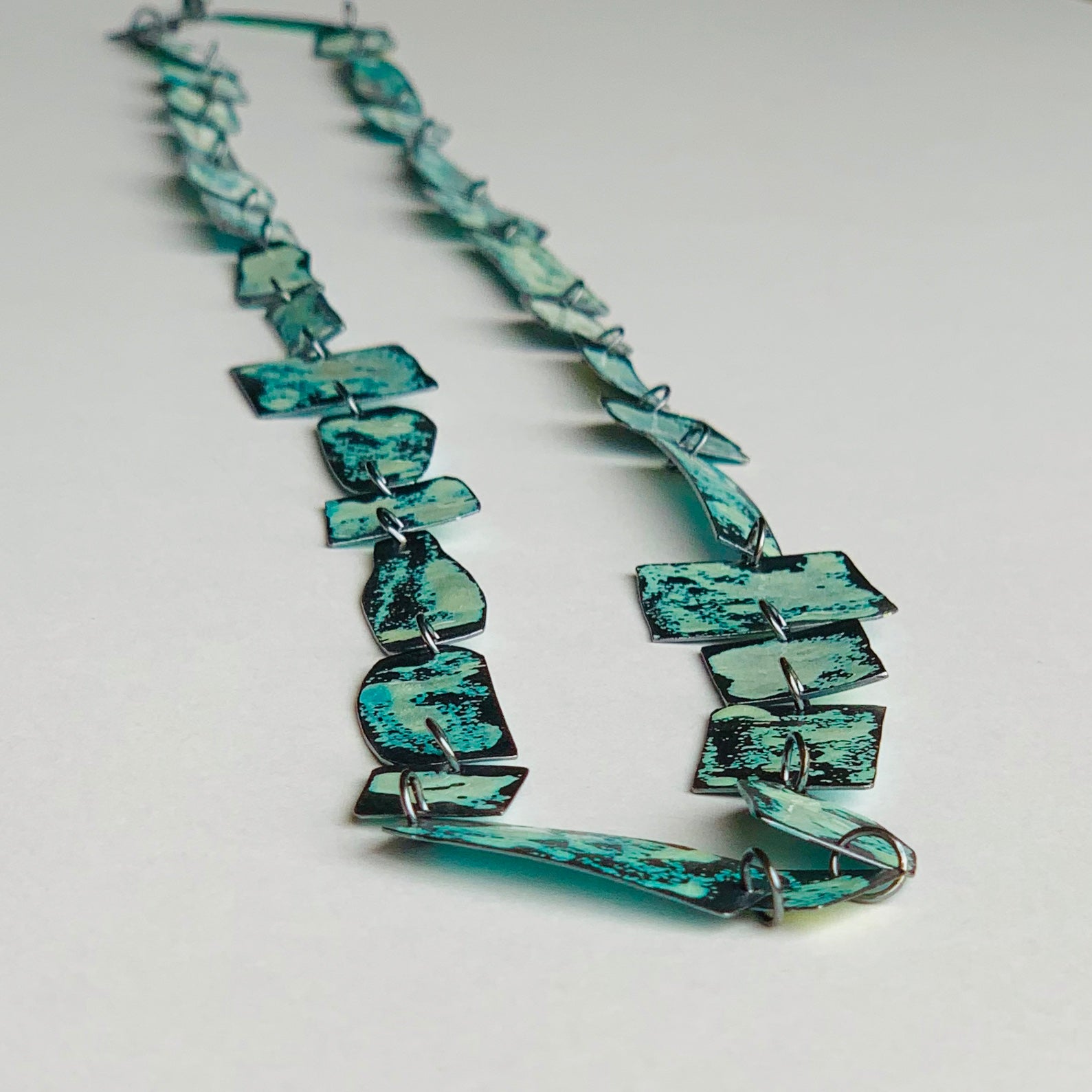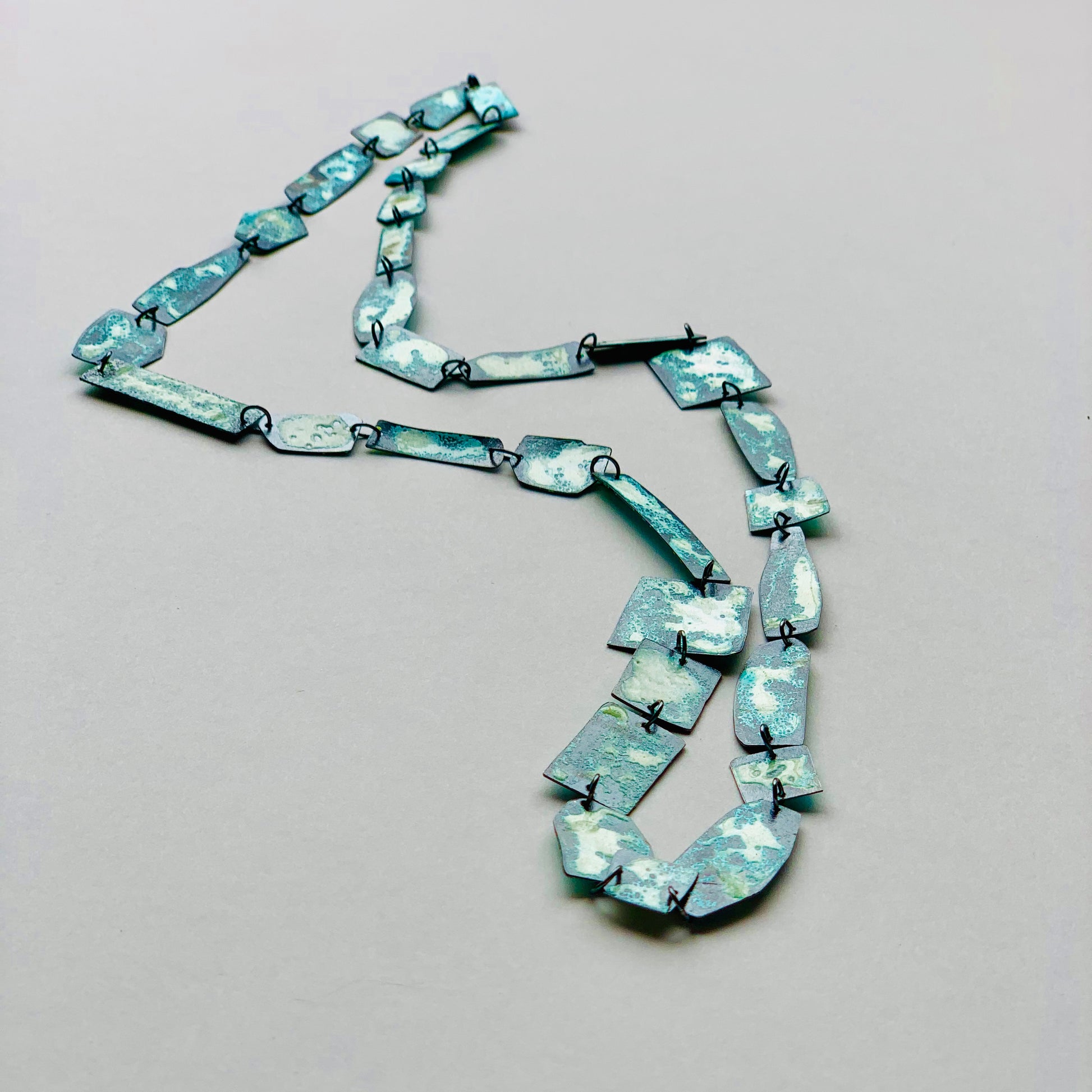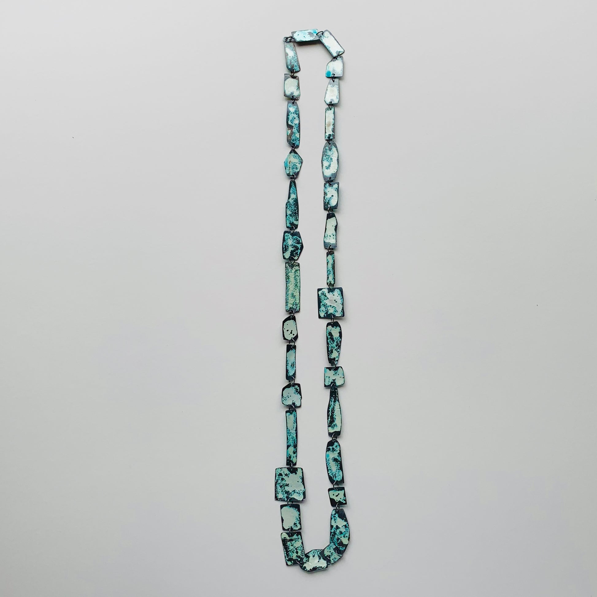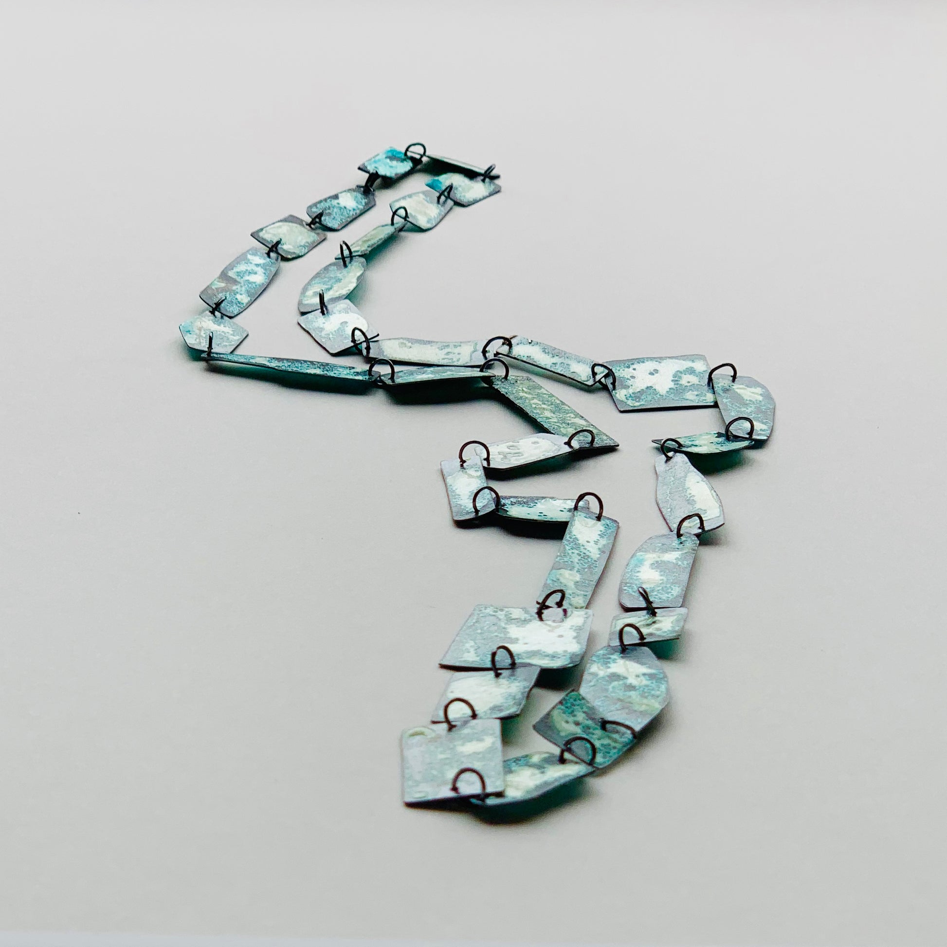 The Seascape collection pieces are made of solid textured sterling silver and vitreous enamel. Each piece is sculpted by hand, accentuating the fluidity and grace. No two pieces are alike.
